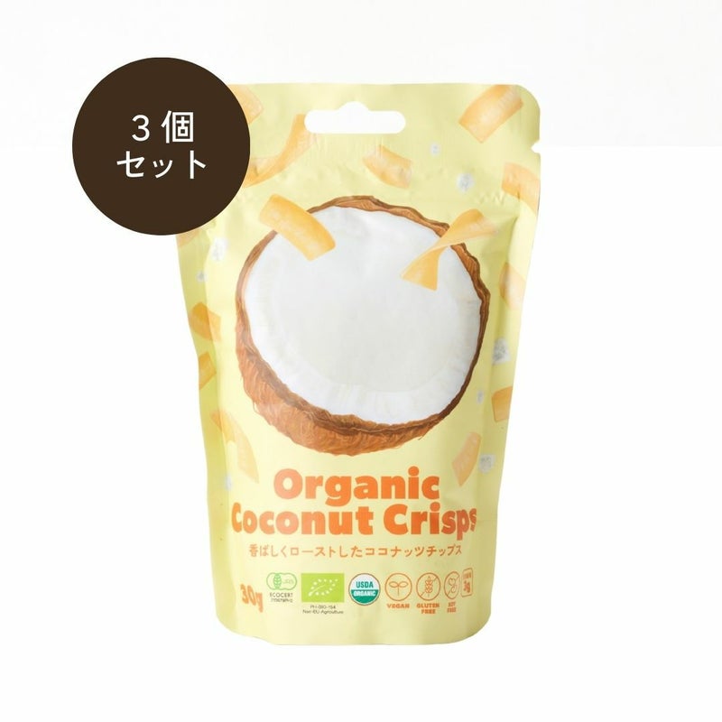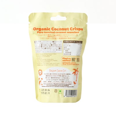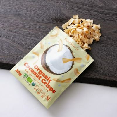 薄くスライスした有機ココナッツを、香ばしく焼き上げた軽やかな食感のおやつ。