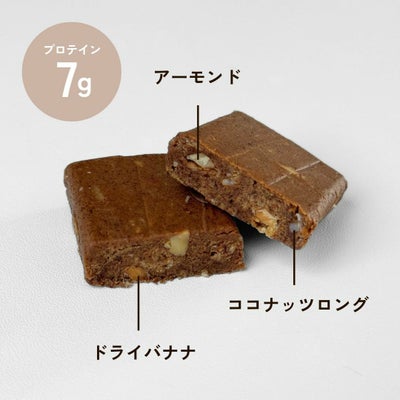 | 原材料 | デーツペースト(イラン製造)、えんどう豆プロテイン、アーモンド、有機ココナッツシュガー、有機ココナッツミルクパウダー、ドライバナナ、ココナッツロング、塩 |